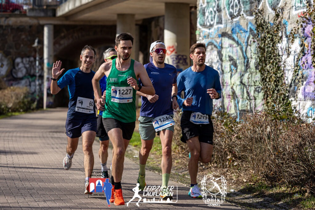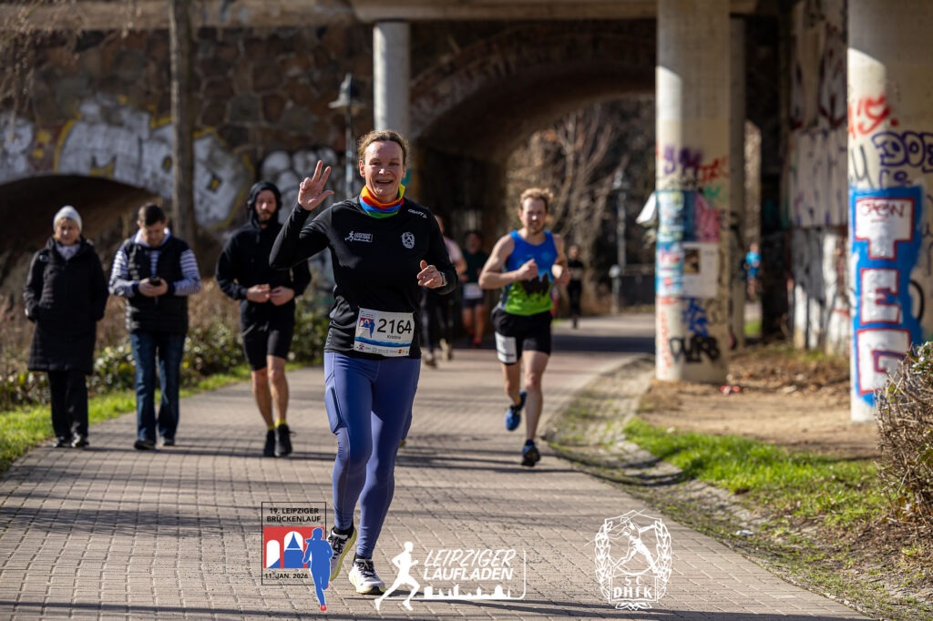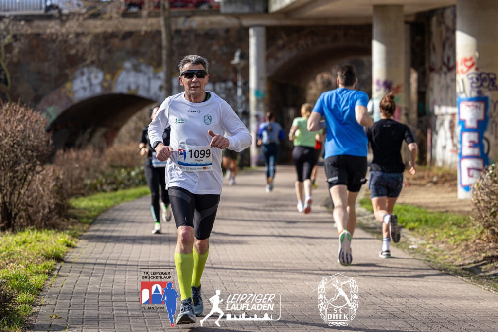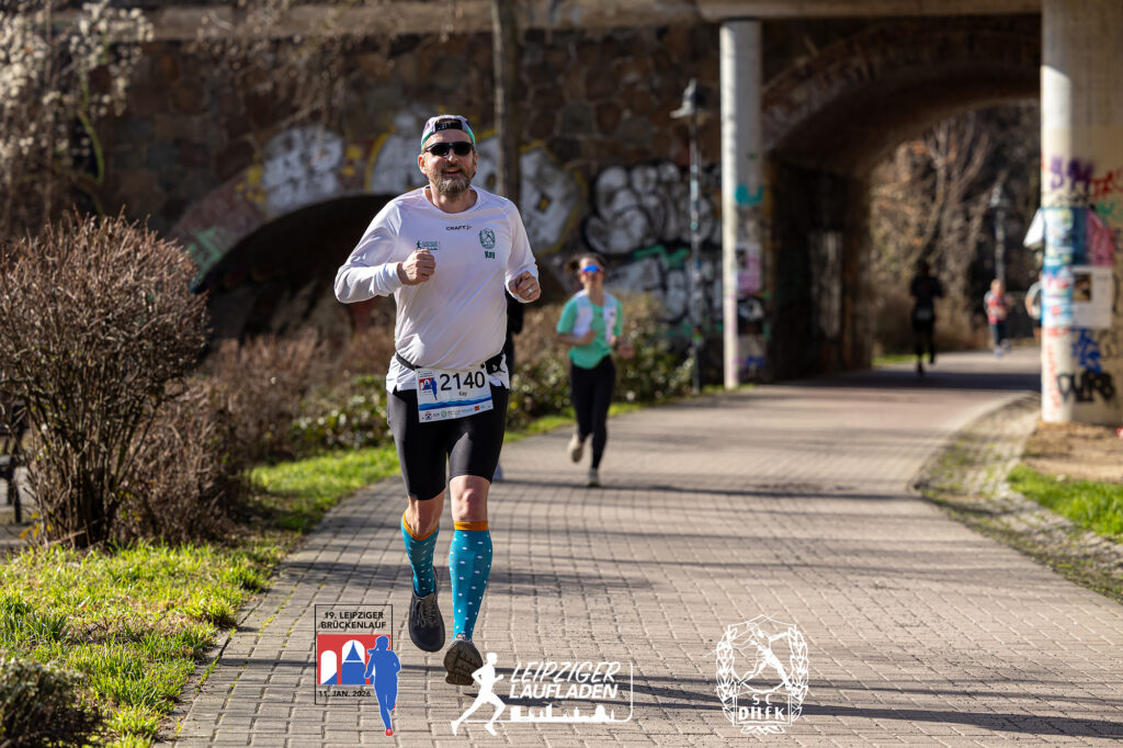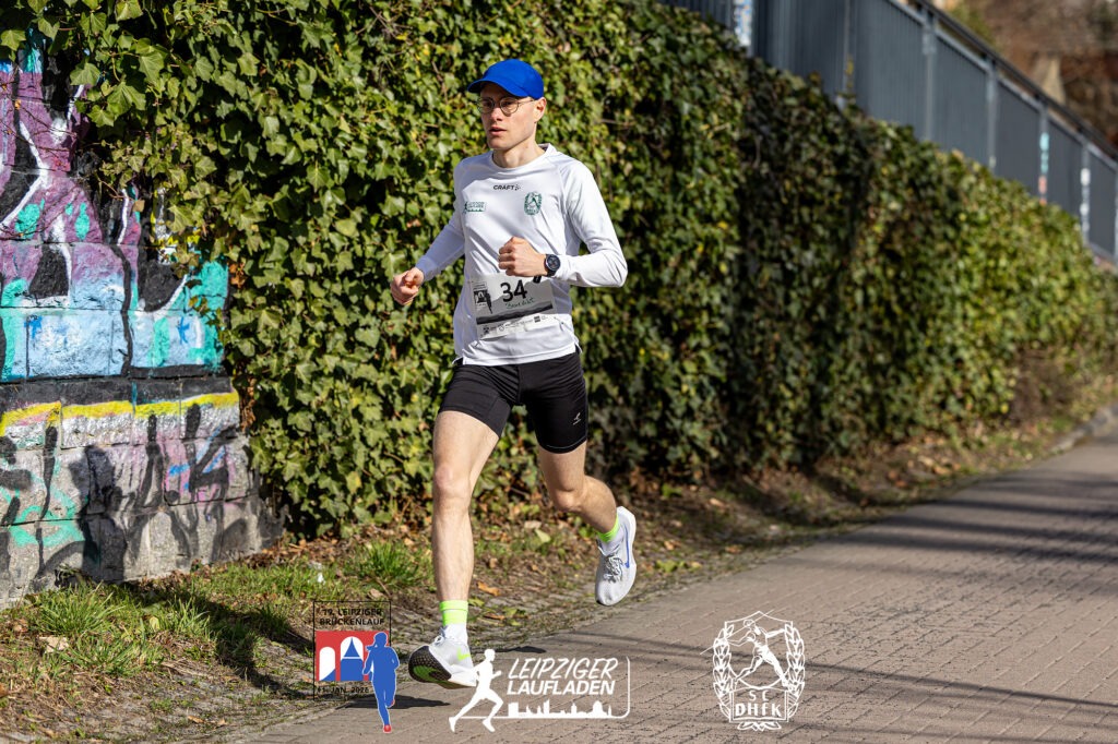 Auch über 8,3 km der Frauen gab es an der Spitze schnelle Zeiten und eine Ehemalige mit neuem Namen: Hier siegt die schon brückenlauferfahrene Karoline Robe aus Leipzig in 32:44 min., auf Platz 2 Anna Kristin Hilbert, die viele Jahre für unsere Abteilung gelaufen ist, und im letzten Jahr ihren langjährigen Freund, den Olympia Silbermedaillengewinner im 50 km Gehen 2021 in Tokio, Jonathan Hilbert geheiratet hat. Wünschen wir Beiden auf diesem Weg alles Gute! Auch bei den Männern setzte sich auf dieser Strecke ein Brückenlauferfahrener durch: Unser Sven Richter war nach 28:07 min. der Gewinner. Auf Platz drei mit Benedikt Enders ein weiterer SC DHfK Läufer in 29:58 min.