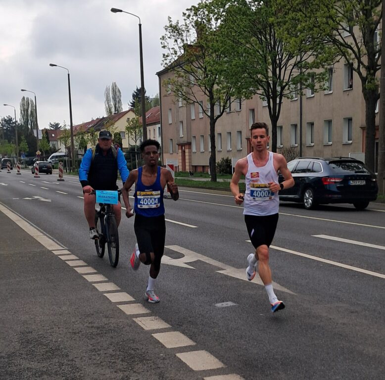 Beim Marathon waren die im Vorfeld genannten Favoriten auch zuerst im Ziel – bei den Männern liefen Jakob Lange (PTSV Rosenheim), ein ehemaliger Wintersportler, und Habtamu Agumas Geleta (SG MoGoNo Leipzig) auf der ersten Runde zusammen, begleitet von Tasso Hanke per Fahrrad, der Trainer von Habtamu, aber dann konnte sich der Rosenheimer etwas absetzen, und war nach 2:17:43 h der neue Sieger. Habtamu Agumas Geleta, der erst seinen dritten Lauf auf einer Marathonstrecke absolvierte, zeigte sich nach 2:25:33 h zufrieden: „Am Ende fehlte mir wohl doch etwas die Kraft.“ Eine tolle Zeit schaffte auch die Frauensiegerin Antonia Müller (LG eXa Leipzig) nach einer langen Verletzungspause – mit 2:43:07 h lief sie eine neue persönliche Bestzeit.