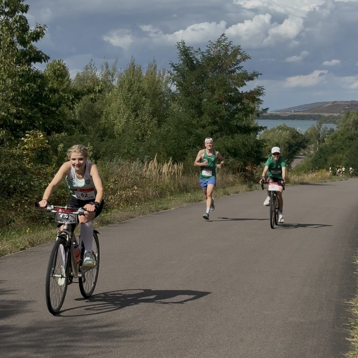 Bestes Sommerwetter Mitte September und nach den dünnen Feldern während der Coronazeit freuten sich die Veranstalter über 63 Mannschaften! Apropos Veranstalter, bisher war der Kuhstall e.V. gemeinsam mit dem LFV Oberholz für den Südraummarathon verantwortlich, aber nach der 25. Auflage hat sich Kuhstall e.V. zurückgezogen, der LFV Oberholz um Jörg Bauer mit seinem Team haben diese umfangreiche Veranstaltung allerdings hervorragend gemeistert! Pünktlich 13.00 Uhr gingen jeweils zwei Radfahrer pro Team auf die anspruchsvolle Strecke, 5 Minuten später folgten die zum Team gehörenden Läufer. Mit dabei waren von unserer Abteilung das im letzten Jahr erfolgreiche Frauenteam mit Tina Laux, Sylvia Frankenstein und Sindy Kermer, dazu ein Mix-Team mit Thomas Lenor, Luise Bayer und Mattis Frankenstein. Dazu kommen Max Betsch, der schon oft beim Südraummarathon erfolgreich war, und diesmal im Siegerteam TSG Markkleeberg/SC DHfK mit David Münch und Martin Seamus nach 2:11:11 h ins Ziel kam – der 9. Sieg für Max in einem Siegerteam beim Südraumarathon! Auch unsere drei Frauen waren in diesem Jahr wieder in starker Form: Tina Laux, Sindy Kermer und Sylvia Frankenstein waren mit 2:41:52 h sogar noch drei Minuten schneller als 2024 und konnten erneut Platz eins feiern. Auch unser gemischtes Team mit Thomas Lenor, Luise Bayer und Mattis Frankenstein landeten nach 2:34:35 h auf einem Medaillenplatz – ein starker Platz 3 bei 24 gestarteten Teams! Ein erfolgreicher Tag für unsere Abteilung Laufsport – herzliche Glückwünsche an unsere Frauen und Männer! (ps)