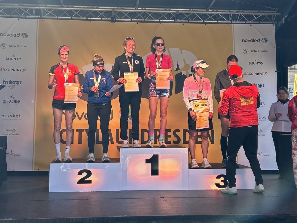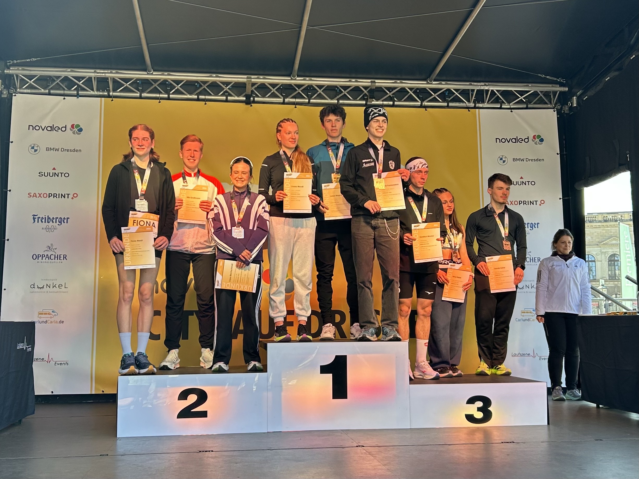 Strahlender Sonnenschein, frühlingsfrische Temperaturen und die traumhafte Kulisse der Dresdner Altstadt: Der 36. Novaled Citylauf am 22. März bot den über 6000 Teilnehmenden beste Bedingungen für ein tolles Lauferlebnis. Bereits der Start am Terrassenufer nahe der Augustusbrücke sorgte für den ersten Gänsehautmoment, danach führte der neue 5-km-Rundkurs über die Marienbrücke zur Neustadt, vorbei am Goldenen Reiter, über die Albertbrücke und auf dem Terrassenufer zurück Richtung Semperoper. Dass die Strecke nicht nur schön, sondern auch schnell ist, zeigen die Siegerzeiten im 10-km-Elitelauf: Bei den Frauen gewann über 10 km Domenika Mayer in 32:33 min vor Kristina Hendel und bei den Männern siegte Kefyalew Kifle in 28:37 min vor Jan Lukas Becker und Sebastian Hendel. Begleitet wurde Domenika Mayer in der ersten Runde von unserem Nic Ihlow, die beiden kennen sich unter anderem vom Hannover Marathon, wo Domenika mit Nic als Pacemaker Deutsche Marathonmeisterin wurde. In der zweiten Runde zog Nic das Tempo an und lief in 31:47 min als Fünfter ins Ziel – für ihn ein schöner Vorbereitungslauf auf den Berliner Halbmarathon und weitere Läufe in dieser Saison. Mit einer starken neuen persönlichen Bestzeit von 35:15 min ist Mattis Frankenstein in die Saison gestartet, damit war er Schnellster der MU18. Auch Sylvia Frankenstein holte den Sieg in ihrer Altersklasse und freute sich über ihre Zeit von 42:34 min. Nicht ganz zufrieden war Magnus Kühn, der nach einer schnellen ersten Runde muskuläre Probleme bekam und in 42:34 min als Zehnter der MU18 das Ziel erreichte. Und ebenfalls noch unter 43 Minuten blieb Patrick Leuschner in 42:55 min. (sf)