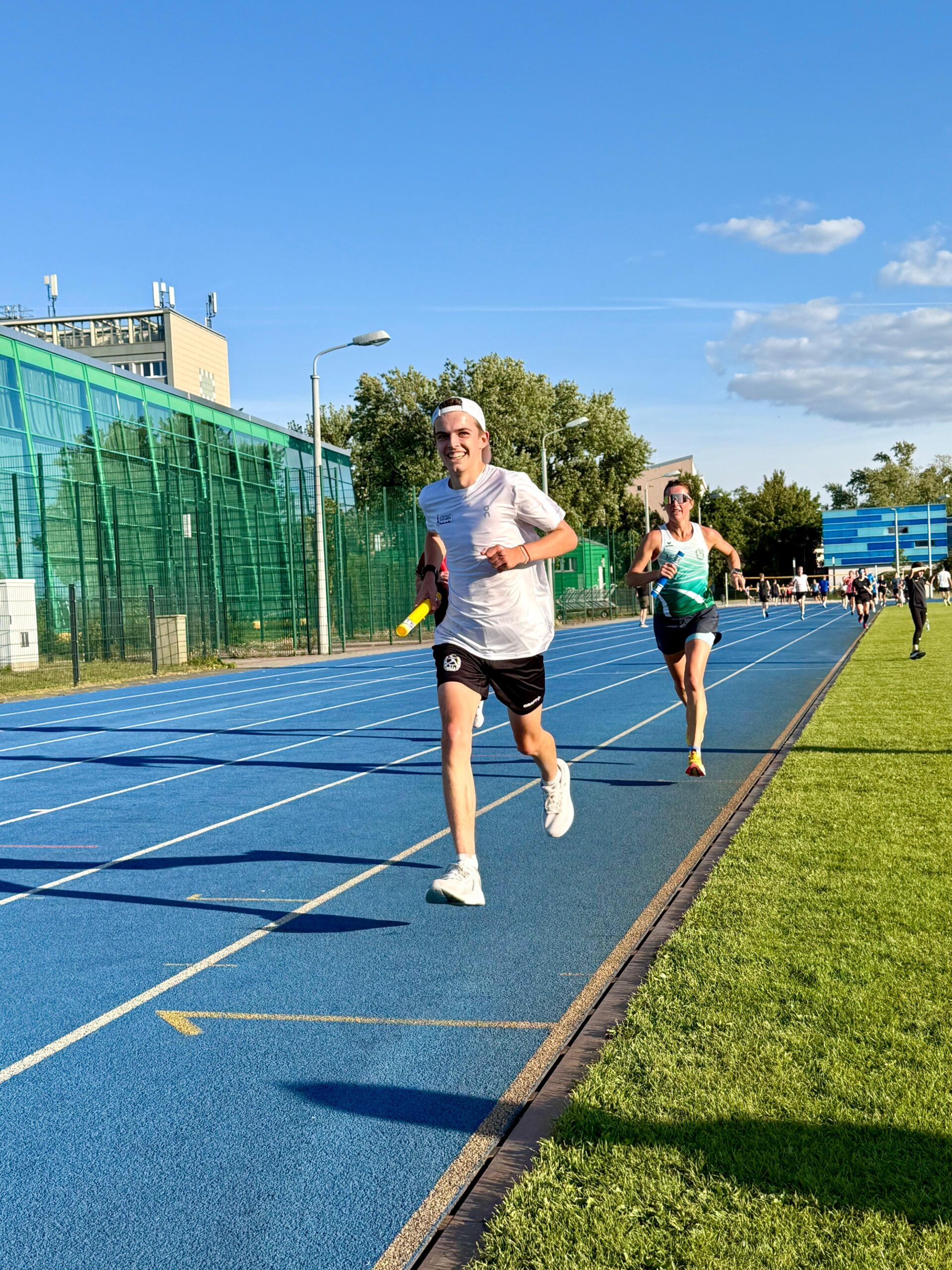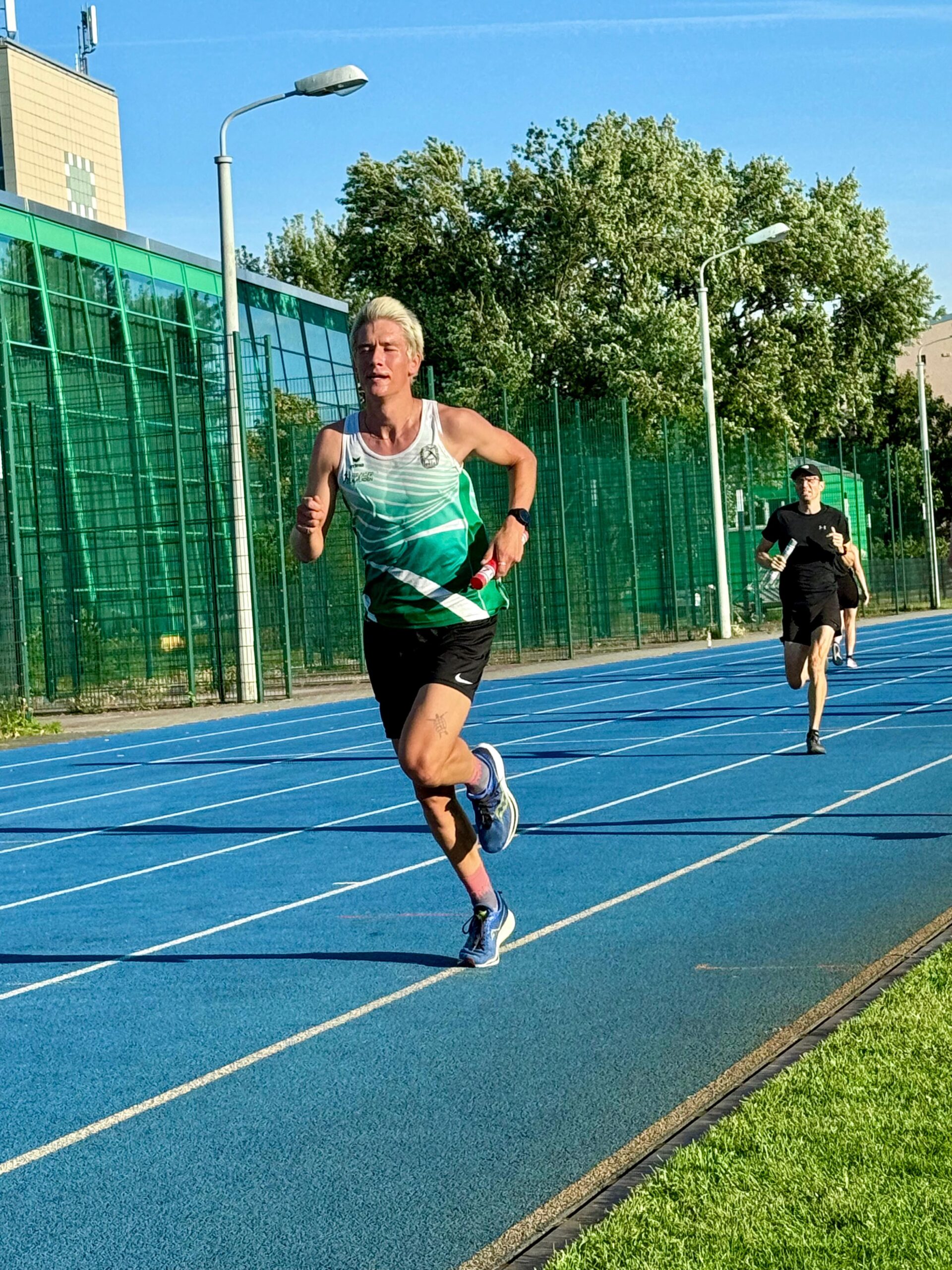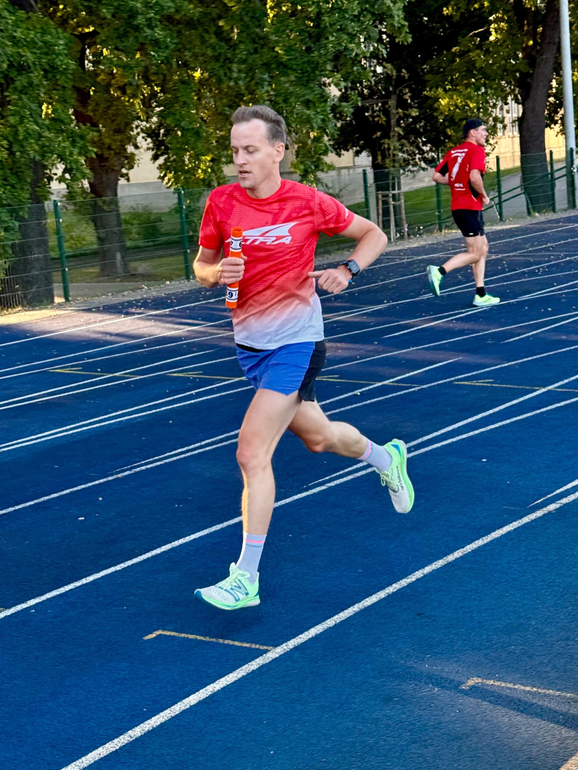 Der Stundenpaarlauf der LG eXa auf dem Testfeld erfreut sich immer größerer Beliebtheit. Am Donnerstag beim letzten Paarlauf dieses Jahres wurde erneut ein Teilnehmerrekord und damit wohl auch die Kapazitätsgrenze erreicht. Innerhalb weniger Tage war die Meldegrenze von 60 Paaren überschritten, so dass der Veranstalter zunächst weitere 10 Startplätze zur Verfügung stellte und am Vortag noch einmal zusätzliche Staffelstäbe bastelte. Schließlich gingen um 18 Uhr 84 Paare an den Start! Man musste schon gut aufpassen, um zwischen den vielen Läufern einen sicheren Stabwechsel hinzubekommen, ohne andere Paare zu behindern. Gleichzeitig war das Ganze so rasant und kurzweilig, dass die Stunde wieder wie im Flug verging.