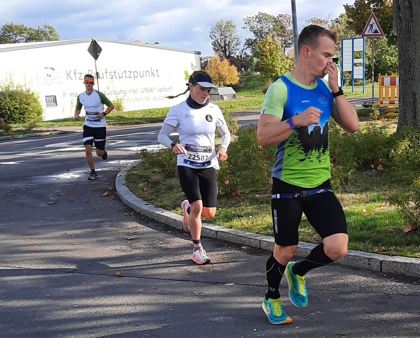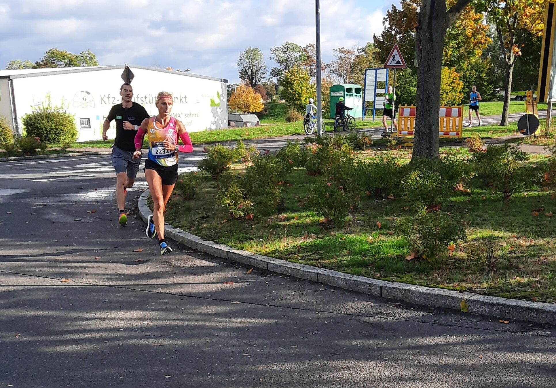 Der erste Halbmarathon dieser Laufveranstaltung fand genau vor 11 Jahren am 13. Oktober 2013 am Leipziger Völkerschlachtdenkmal statt, und die Laufstrecke verläuft immer an historischen Orten der Völkerschlacht von 1813 vorbei. Die Schnellsten beim Halbmarathon waren damals Marc Werner (LFV Oberholz) vor unserem Jörg Matthé und bei den Frauen Katja Schulze aus Basel. Nun bei der 10. Auflage am letzten Wochenende mit Start auf der alten Messe und Ziel am Völkerschlachtdenkmal gab es beim Halbmarathon und 10-km-Lauf große Felder mit über 2280 Aktiven, die allerdings von stürmischen Winden begleitet wurden. Beim Halbmarathon kam bei Kilometer fünf der Triathlonweltmeister Rico Bogen (SC DHFK/LFV Oberholz) schon mit deutlichem Vorsprung vorbei, Rico, der sich damit auf einen Novemberwettkampf in Dubai vorbereiten wollte, siegte am Ende nach 1:10:53 h vor Jonas Wartenberg aus Freital. Im großen Feld der Läufer auch eine bekannte ehemalige Hürdenläuferin, die 2015 bei der WM in Peking Silber über 100 m Hürden errang und u.a. sechsmal in der Leipziger Arena bei Deutschen Hallenmeisterschaften startete – Cindy Roleder, nun 35, die mit ihrem Mann eine neue Herausforderung suchte und die Strecke unter zwei Stunden absolvieren wollte: „Ziel geschafft“ erklärte Cindy, nachdem sie das Ziel in 1:58:08 h erreicht hatte. Auch Vertreter unserer Abteilung waren beim Halbmarathon dabei. So belegte Samuel Schubert Rang sieben in 1:19:14 h und war damit der Dritte der M35. Auf Platz 19 erreichte Eric Binnebößel nach 1:23:01 h das Ziel und war damit 5. der M20. Alexander Schirrmeister lief 1:25:52 h und war damit 5. der M30. Zwei Altersklassensieger kamen außerdem von unserer Abteilung: Bei der M50 Dirk Müller in 1:27:10 h und Jens Weniger bei der M55 nach 1:29:21 h. Beim Halbmarathon der Frauen wiederholte die zweifache Leipzig-Marathon Siegerin Yvonne van Vlerken ihren Vorjahreserfolg in schnellen 1:19:15 h vor unserer Paula Gredig, die bei diesen Bedingungen ebenfalls mit 1:27:41 h eine starke Zeit lief. Als Zweite der W20 folgte Luisa Bayer in 1:31:32 h und auch unsere älteren Frauen waren tapfer unterwegs: Susann Materlik wurde bei der W45 Dritte in 1:50:53 h, Annette Hempel wurde Zweite der W60 in 1:57:16 h.