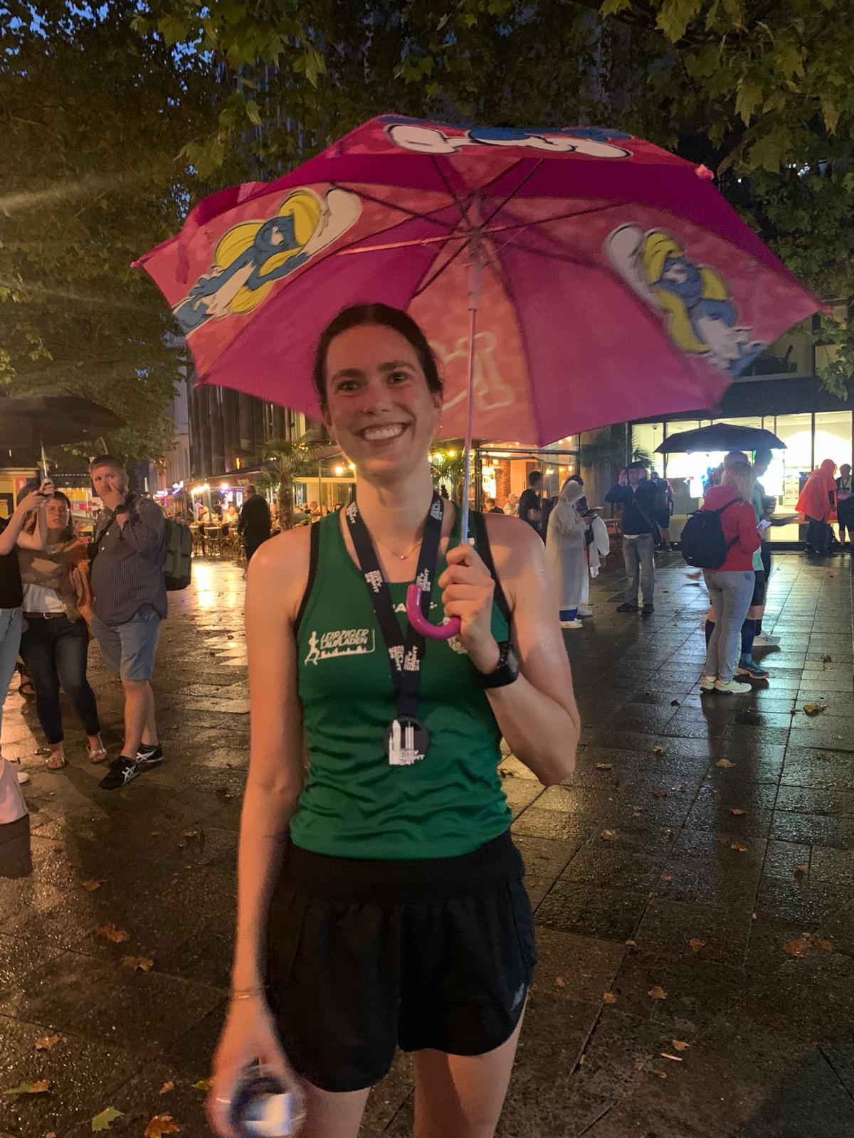 Die Adidas City Night der SCC-Events in Berlin ist immer wieder ein Highlight im Laufkalender. Jedes Jahr am letzten Wochenende des Julis steigt einer der bestbesetzten 10km Läufe des Landes. Start und Ziel befinden sich in der Nähe der Gedächtniskirche auf dem Kudamm. Seit zwei Jahren ist der Adenauerplatz das Zentrum des Laufs, von dem in alle Himmelsrichtungen die Laufstrecke abzweigt und sich deshalb viele Zuschauer zum Anfeuern dort einfinden. Das Wetter zeigte sich an diesem Abend schwülwarm mit einsetzendem Regen nach Beginn des Rennens. Nach Start um 20:30 Uhr stürmte Johannes Motschmann vom gastgebenden SCC Berlin vorneweg. Er gewann den Lauf in 28:51 Minuten. Dahinter bildeten sich einige schnelle Gruppen. Unser Sven Richter testete schonmal die schnellen Berliner Straßen auf dem Weg zum 50. Berlin Marathon. Er konnte seine Gruppe nicht ganz halten, schaffte aber trotzdem mit 33:00 Minuten eine sehr passable Zeit (Platz 64 / AK 11). Zweitschnellster unserer Abteilung war Samuel Schubert, der in 34:53 zu einer neuen Bestzeit lief (Platz 114 / AK 24). Dahinter liefen ebenfalls Roberto Schumann (Platz 135 / AK 6), Tim Wiegand (Platz 162 / AK 64) und Charlotte Drews (Platz 175 / AK 72). Auch Dietmar Delias und Melina Payer durften schließlich bei Dämmerung den Einlauf in das weithin sichtbare hell erleuchtete Zieltor feiern. (rs)
