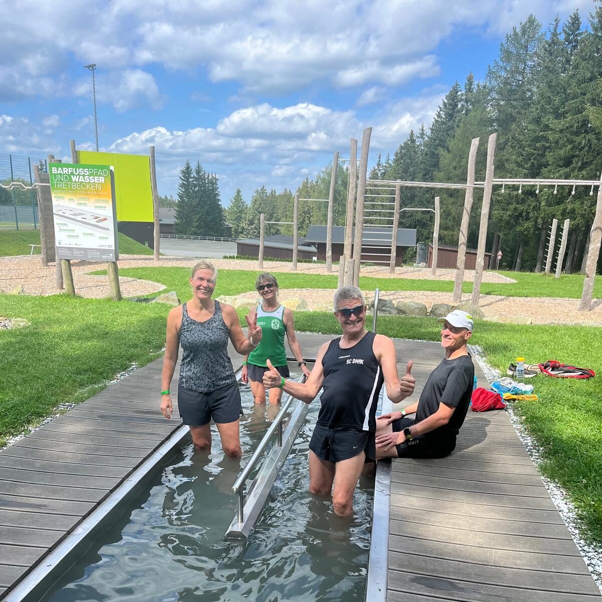 Zum traditionellen Trainingslager auf dem Rabenberg vom 15. bis 18. August waren diesmal 17 Läuferinnen und Läufer aus verschiedenen Trainingsgruppen angereist. Jeder konnte auf dem großen Gelände des Sportparks Rabenberg und in den angrenzenden Wäldern sein Trainingsprogramm umsetzen. Schwerpunkt waren natürlich die Laufeinheiten auf der Bahn und im Wald mit unserer Trainerin Jana. Auch Koordinationstraining, Sprints und Staffelläufe sowie Mobility gehörten zum vielseitigen Programm. Die Radsportfreunde unter uns radelten zum Fichtelberg oder nach Tschechien und die Schwimmer nutzten die Schwimmhalle mit 50-Meter-Bahn. Nach dem Training erfrischten wir uns im Kneipp-Becken und bei einem Kaltgetränk auf der Terrasse. Am Abreisetag stand noch einmal ein langer Waldlauf bzw. für einige die Teilnahme am Schwarzenberger Edelweißlauf über 10 Kilometer an. (sf)