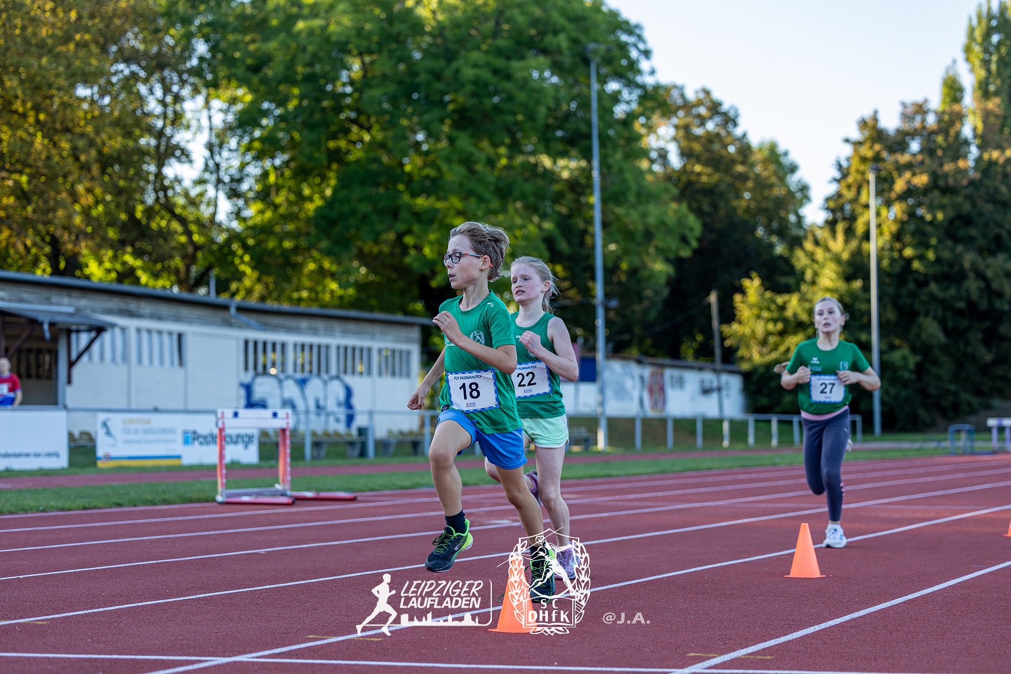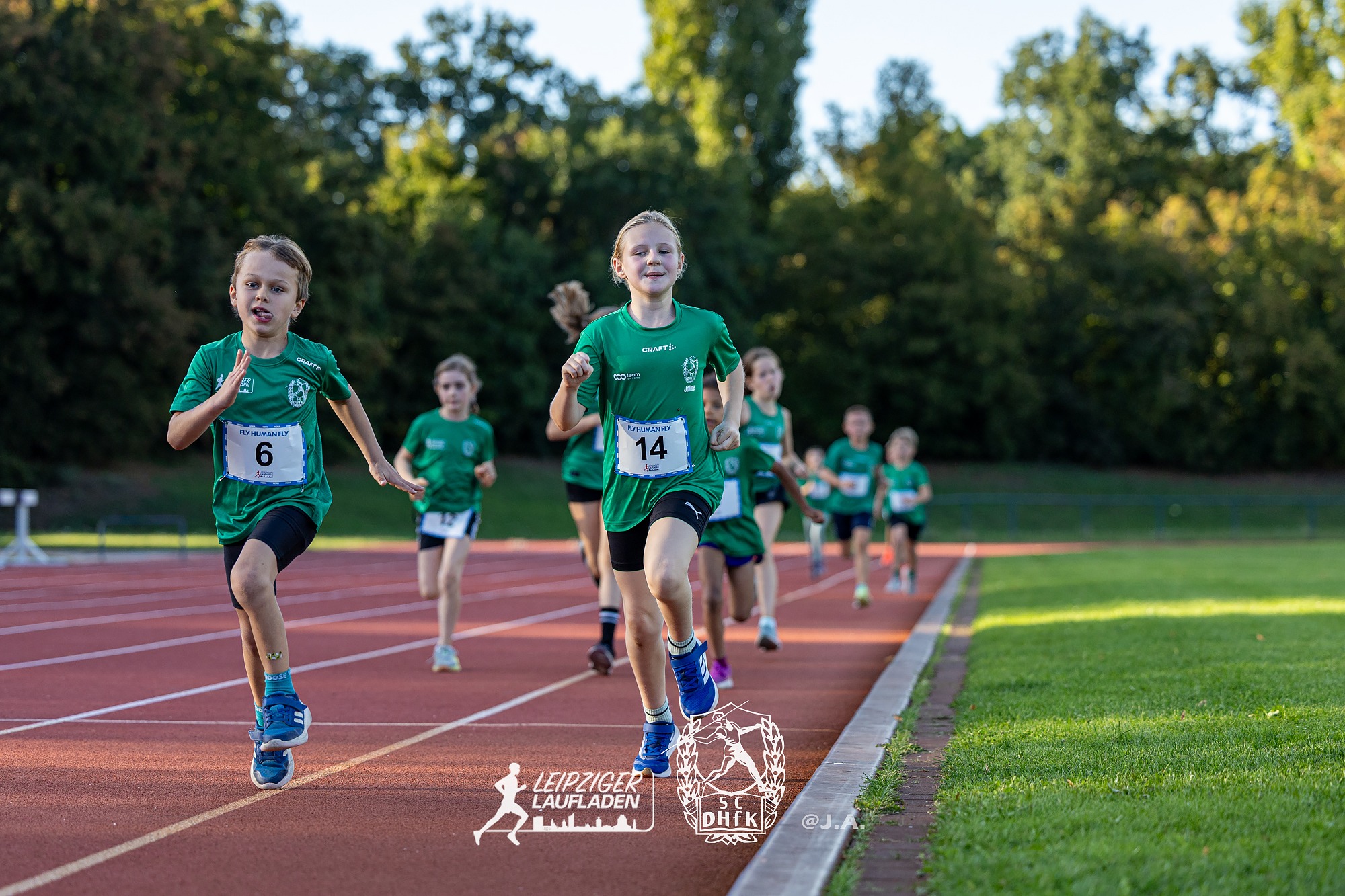 Los ging es mit drei Läufen über 1.000 m der Altersklassen U10, U12 und U14. In den Starterfeldern sah man etliche grüne DHfK-Shirts, denn allein aus den Trainingsgruppen unserer Abteilung Laufsport waren 27 Kinder dabei. Schnellster über 1.000 m war diesmal Ben Michalk (TRIStars Markkleeberg) in 3:19,13 min vor unserem Odin Chudy in 3:19,87 min. Bei den Mädchen lief Lotta Wolf (TVL Freiberg) in 3:33,36 min die schnellste Zeit, Zweite wurde unsere Noemi Lang in 3:54,48 min.